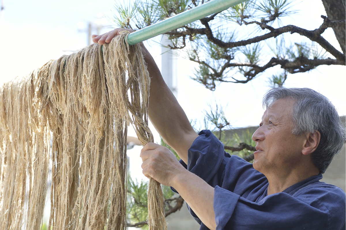Taking considerable time and effort, Japanese wisteria vine bers go through numerous processes to form a single thread of Fujifu.